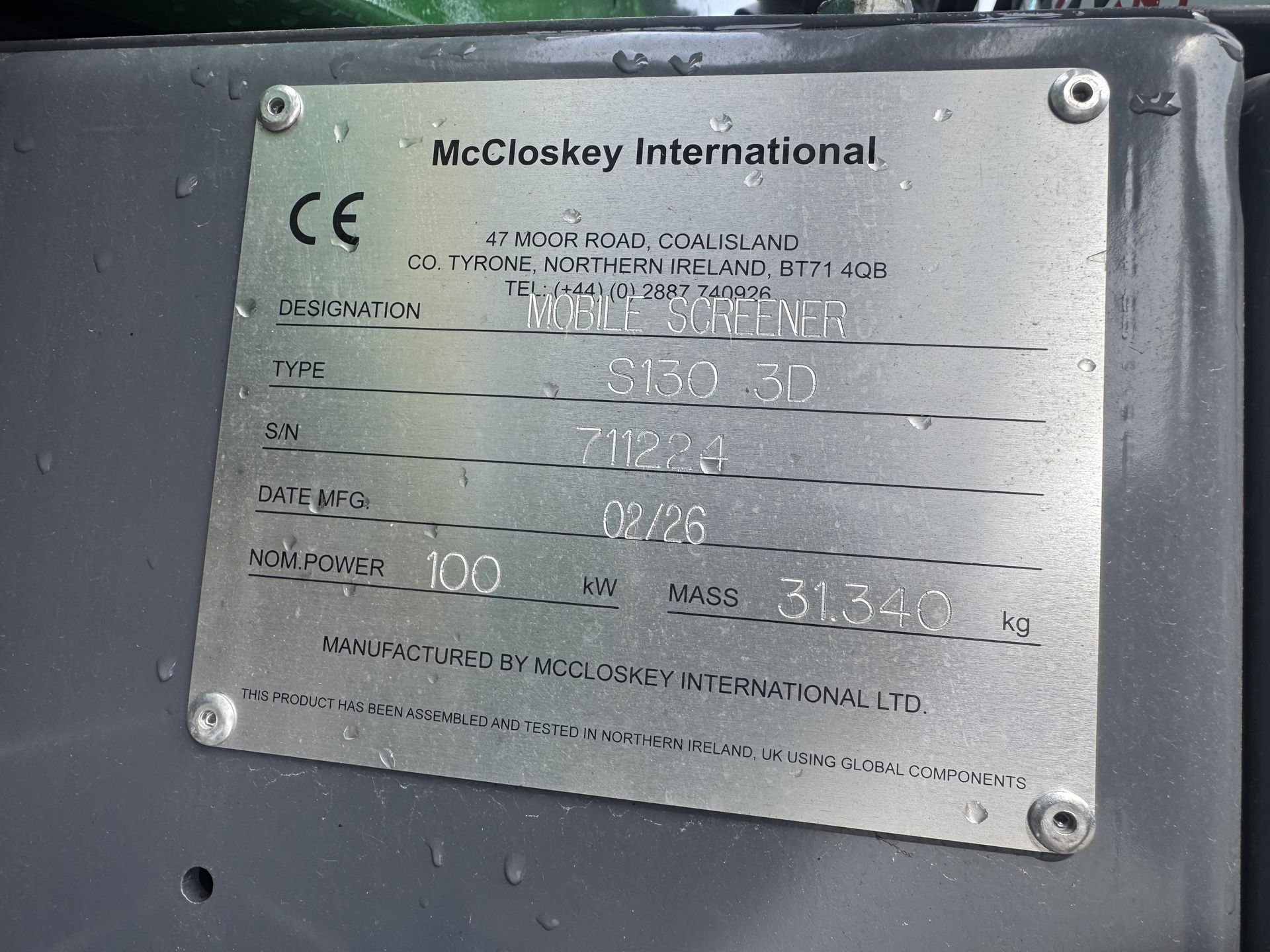 McCloskey S130 dual power Troetažno sito Dvostruki pogon dizel/struja Podvoz na gusjenicama Kapacitet do 250t/h Snaga dizel motora 96 kW / elektro pogon 2x37 kW Ukupna površina sita, 18,5m2 Radna težina 34t